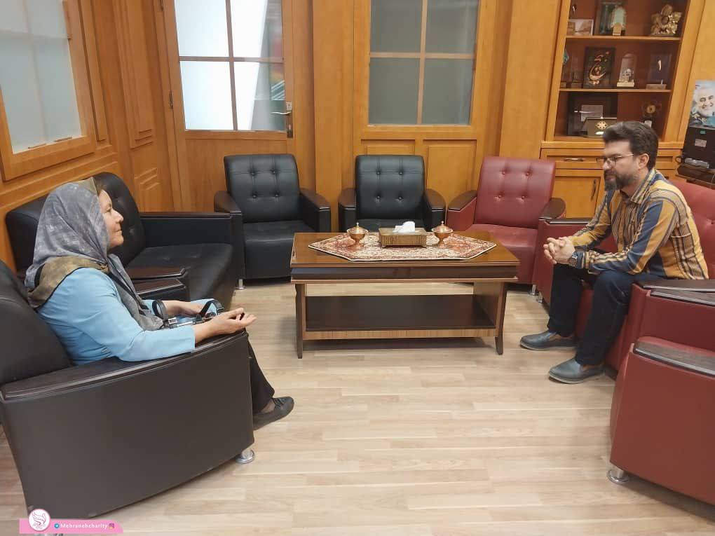 جلسه مسئول محترم کمیته بانوان با مهندس کریمی؛ مدیریت سازمان فرهنگی ورزشی شهرداری جهت فعالیت خیرین کمیته در پارک بانوان و نظر ایشان در مورد مهرانه: «در مهرانه کار بسیار مهم و ارزشمندی انجام دادند مسئولین مهرانه افراد متشخص و مسئولیت پذیری هستند ضمنا از خدمات رسانی و حمایت مهرانه نسبت به بیماران تشکر و قدردانی کردند.